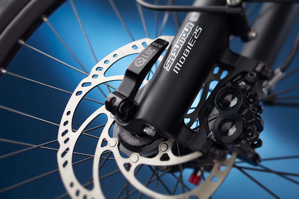 Swift, smooth and strong, the athletic 46er makes it look easy—hauling a load or just hauling down the road. Front suspension makes short work of uneven terrain, while an oversized rear rack expands your cargo options to give you unequaled capability in a standard-sized bike.