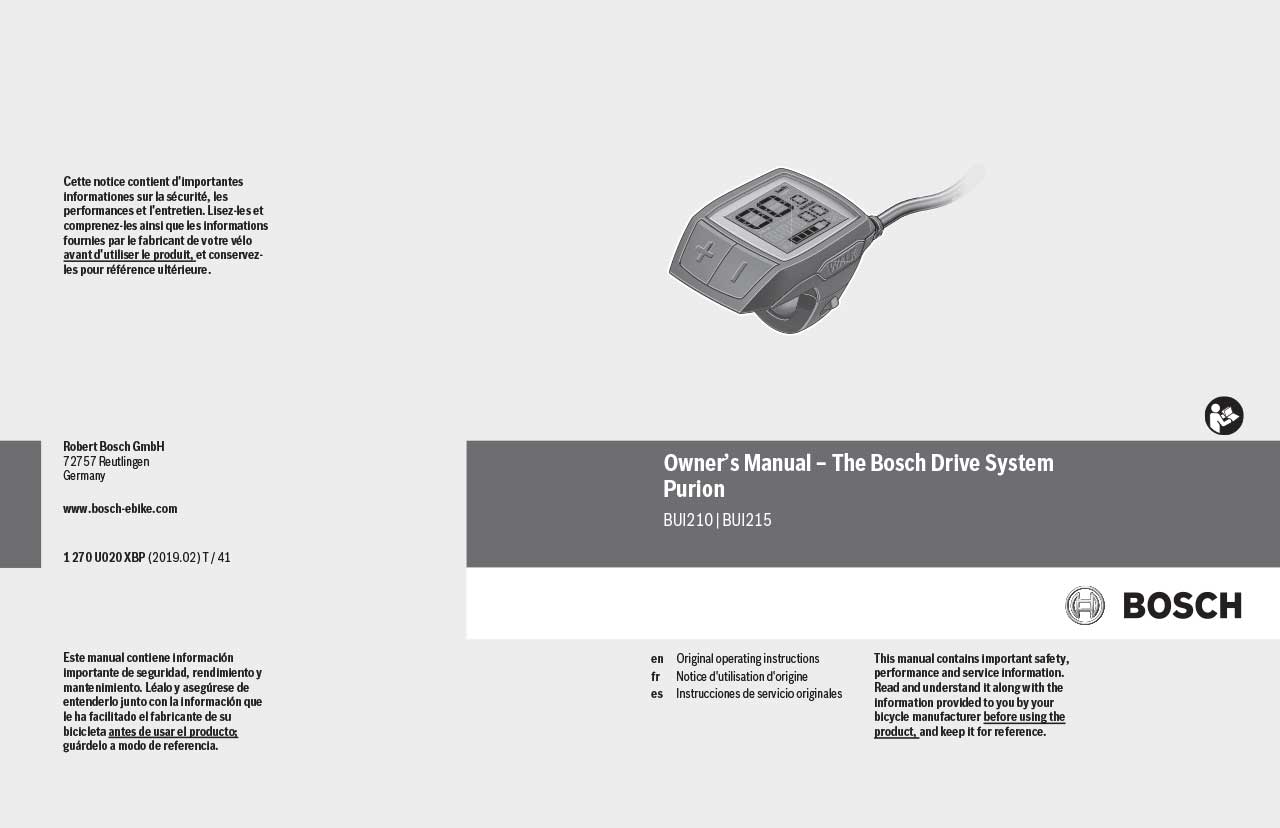 In order to view, download or print the PDF manual, please press this link » Bosch Drive System – Purion – Owner’s Manual – US. ![]()