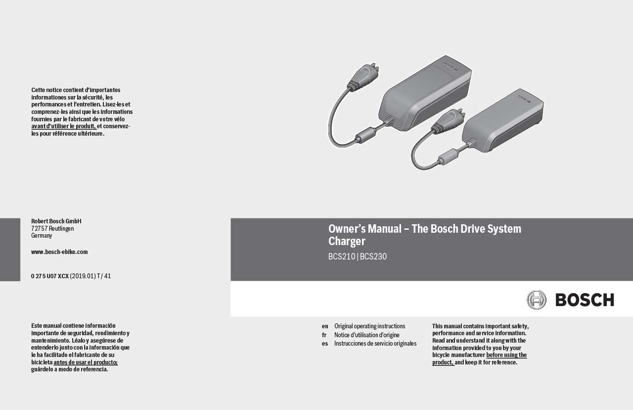 In order to view, download or print the PDF manual, please press this link » Bosch Drive System – Charger – Owner’s Manual – US. ![]()