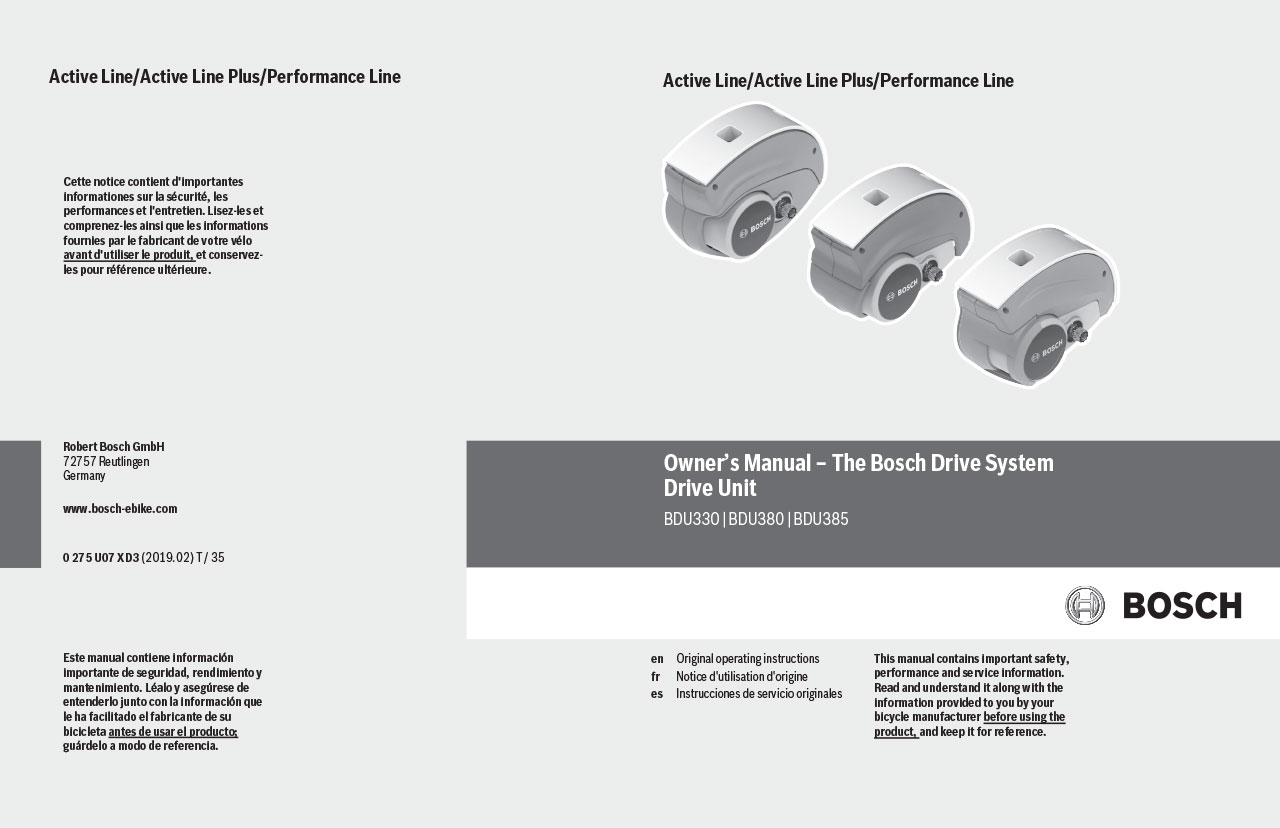 In order to view, download or print the PDF manual, please press this link » Bosch Drive Units – AL/ALP/PL – Owner’s Manual – US. ![]()