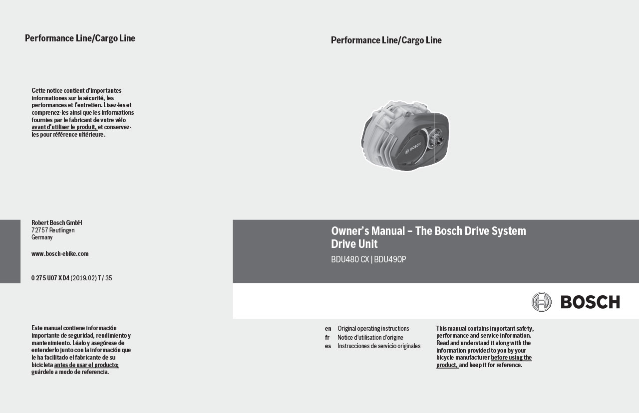 In order to view, download or print the PDF manual, please press this link » Bosch Drive Units – PL/CL – Owner’s Manual – US. ![]()