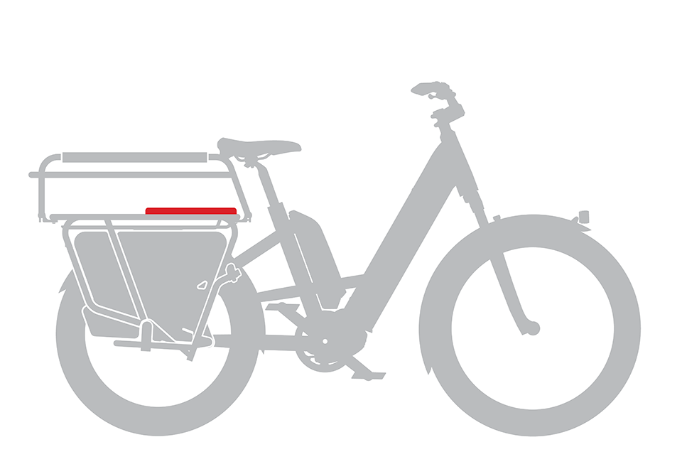 WARNING! When carrying passengers, rear wheel must be covered! Install Benno Wheel Guards or Utility Pannier Bags. Failure to do so could result in serious injury! Make sure that no parts of the body or clothing come near moving parts on the bicycle, such as chain, spokes, tires or brakes.